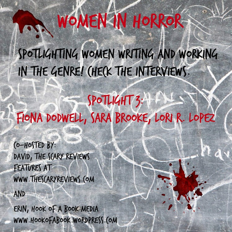Welcome to the February Women in Horror Spotlight Project, co-hosted by David Spell at The Scary Reviews, and Erin Al-Mehairi, Hook of a Book Media. We will be featuring many women over a short period of time with mini-interviews in which all were asked the same three questions. We urge you to get to know them and delve further into their work, whether they are a writer or editor. We will feature about three women each day that we have a post, and hopefully, we will end the month with one big Facebook party, so stay tuned.