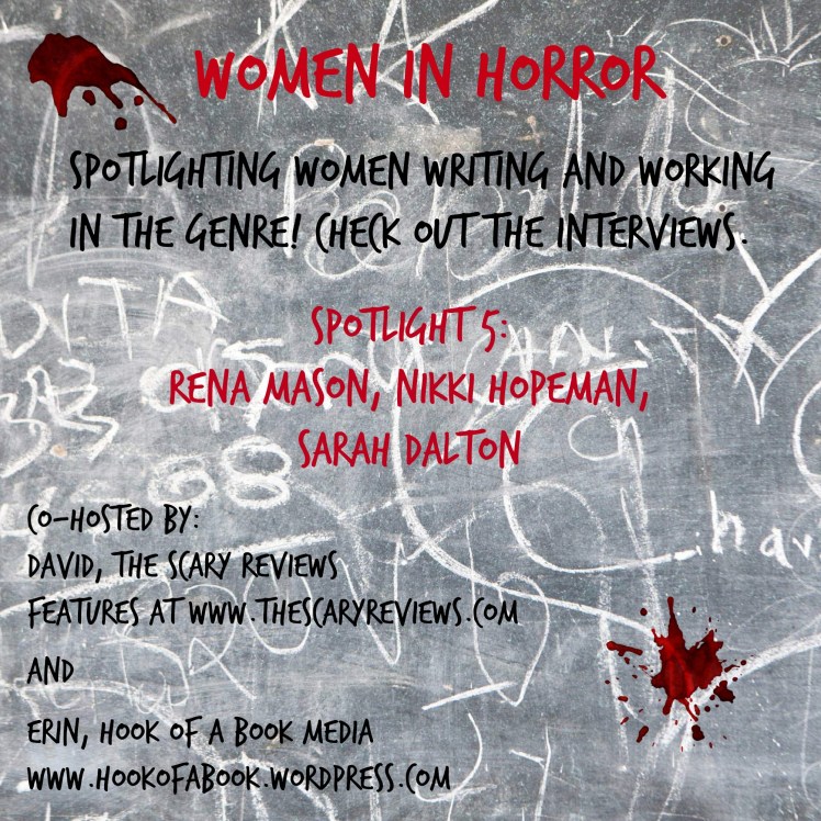 Welcome to the February Women in Horror Spotlight Project, co-hosted by David Spell at The Scary Reviews, and Erin Al-Mehairi, Hook of a Book Media. We will be featuring many women over a short period of time with mini-interviews in which all were asked the same three questions. We urge you to get to know them and delve further into their work, whether they are a writer or editor or other professional. We will feature about three women each day and hopefully have a Facebook party at some point in the future.