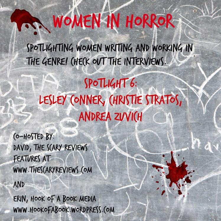 Welcome to the February Women in Horror Spotlight Project, co-hosted by David Spell at The Scary Reviews, and Erin Al-Mehairi, Hook of a Book Media. We will be featuring many women over a short period of time with mini-interviews in which all were asked the same three questions. We urge you to get to know them and delve further into their work, whether they are a writer or editor or other professional. We will feature about three women each day and hopefully have a Facebook party at some point in the future.