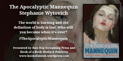 If you’d like to review or feature Stephanie, please contact her publicist Erin Al-Mehairi at hookofabook@hotmail.com. Find The Apocalyptic Mannequin and other of her work at Raw Dog Screaming Press.